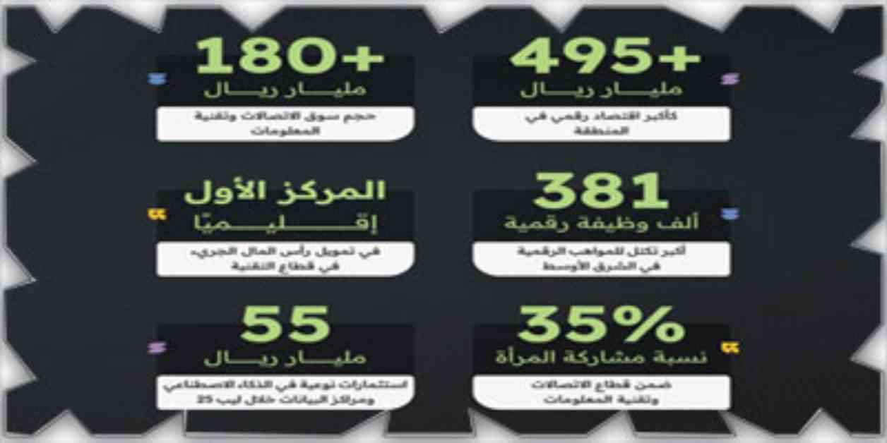 تعتبر السعودية أكبر اقتصاد رقمي في منطقة الشرق الأوسط وشمال أفريقيا، مع قيمة تتجاوز 495 مليار ريال. هذا يمثل 15% من الناتج المحلي الإجمالي. يعتبر هذا تحولًا كبيرًا في هيكل الاقتصاد السعودي ونجاح في تنويع مصادر الدخل. سوق الاتصالات وتكنولوجيا المعلومات شهد نموًا كبيرًا في عام 2024، مع توسع الاستثمارات الخاصة وزيادة الابتكار.